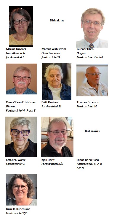 Cirkel 4, Allmän släktforskning med inriktning Disgen. Claes-Göran Edströmer, Gunnar Öhrn och Diana Danielsson. Start torsdagen 15 januari 10.00 -13.00. Var tredje torsdag. 5 tillfällen. Sista dag 9 april.